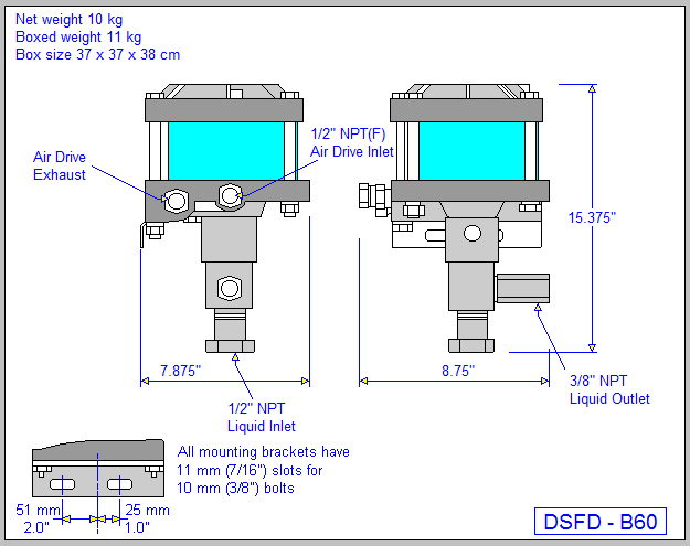 Haskel型號DSFD-B60 2.2HP氣動液體泵的標(biāo)稱比例為60:1,它利用單個空氣頭將液體壓力提升到Z大6500 PSIG。